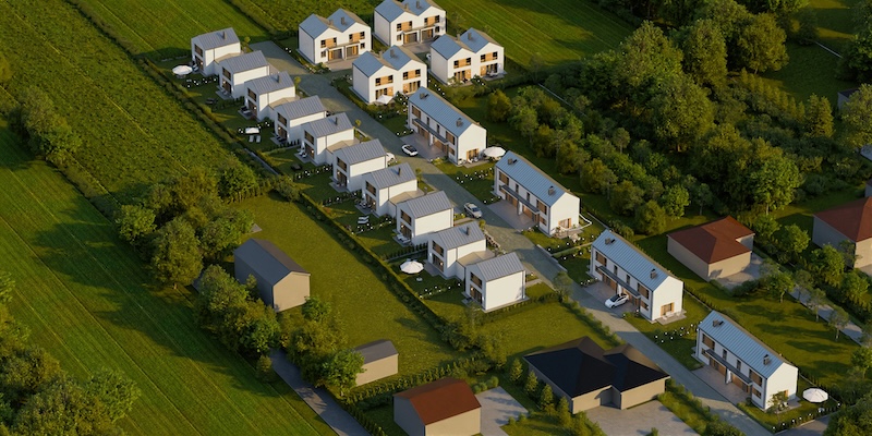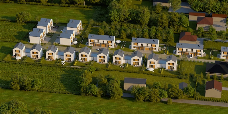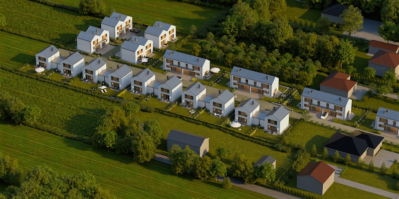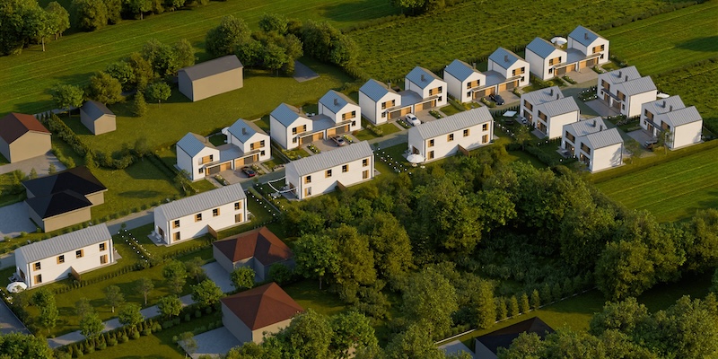 | Domy są już wybudowane i gotowe do obejrzenia.